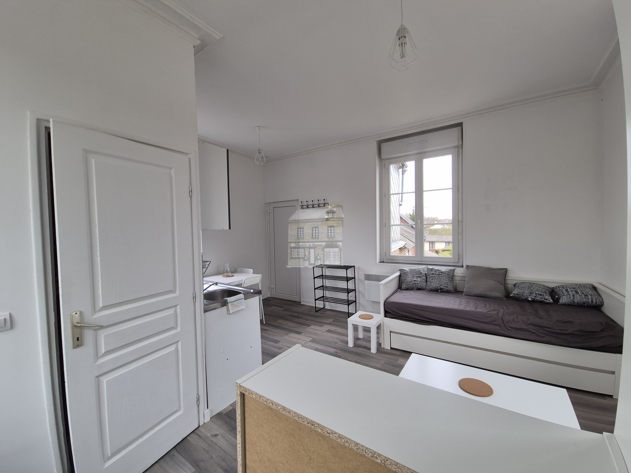 Studio meublé de 22,20 m² à louer près du centre-ville de BEAUMONT LE ROGER, au 1er étage, comprenant :