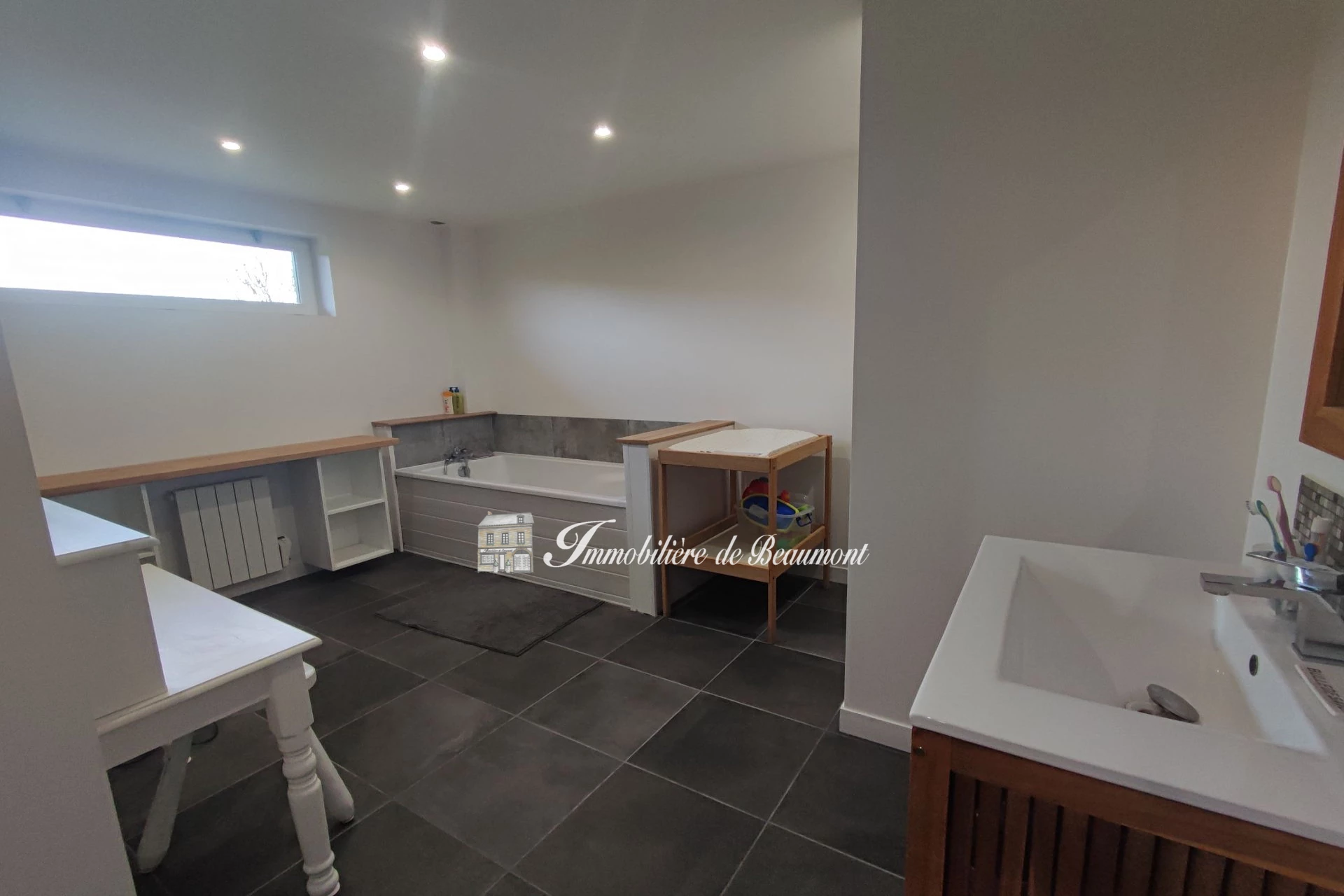 La maison propose une suite parentale confortable, composée d'une salle de bains avec douche, baignoire et WC, ainsi qu'un dressing attenant. Vous trouverez également une chambre supplémentaire, un WC indépendant et une buanderie.