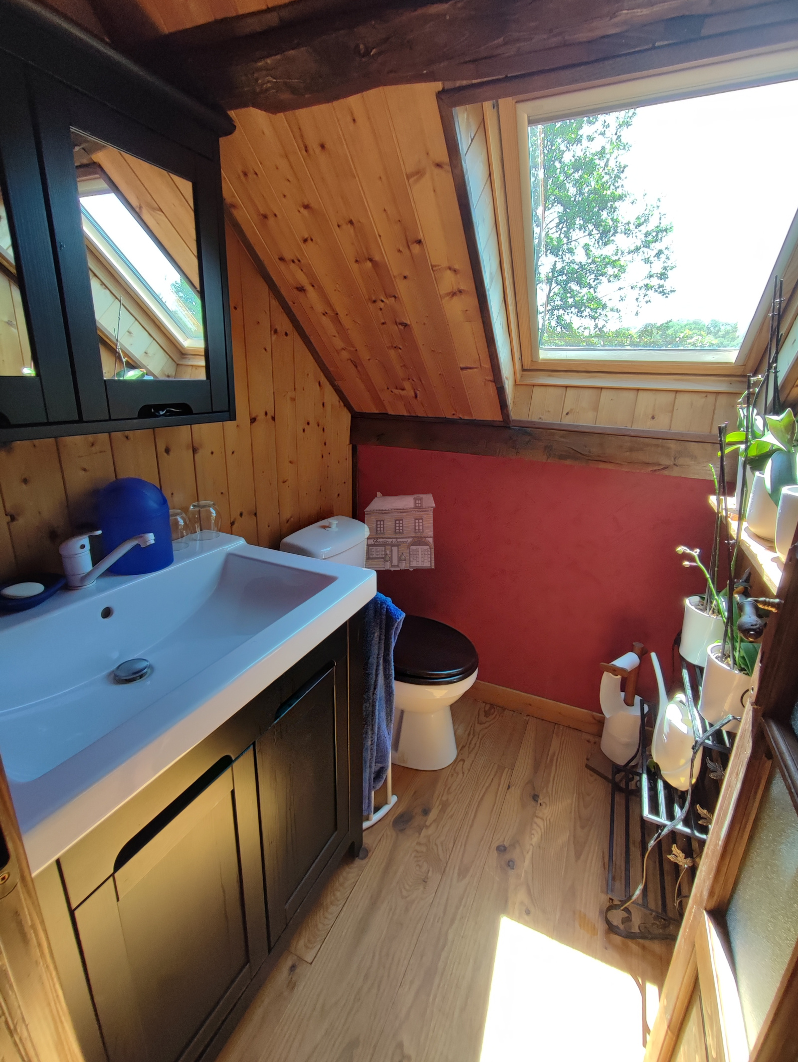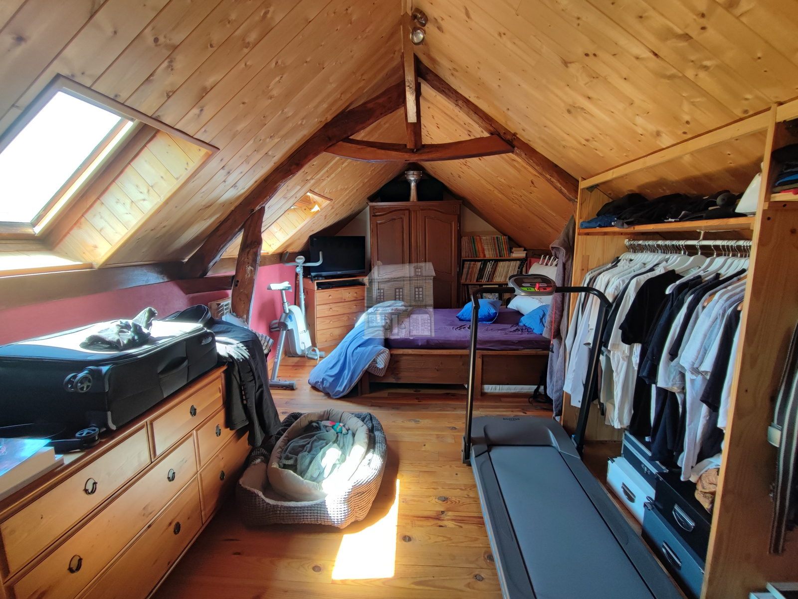 - A l'étage : un palier desservant une chambre, un bureau (ou coin nuit), et WC avec lave-mains.