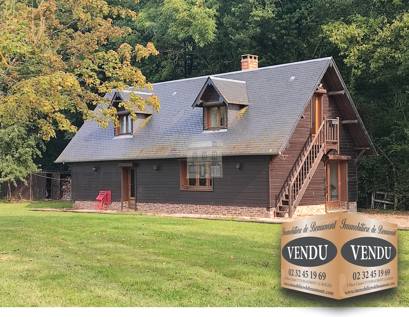 A proximité de BEAUMONT LE ROGER et LA FERRIÈRE SUR RISLE, L'Immobilière de Beaumont vous propose à la vente une charmante maison construite en 2005, parfaitement disposée sur un parc clos et arboré de 8860m².