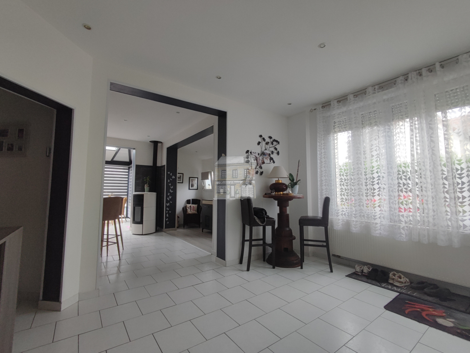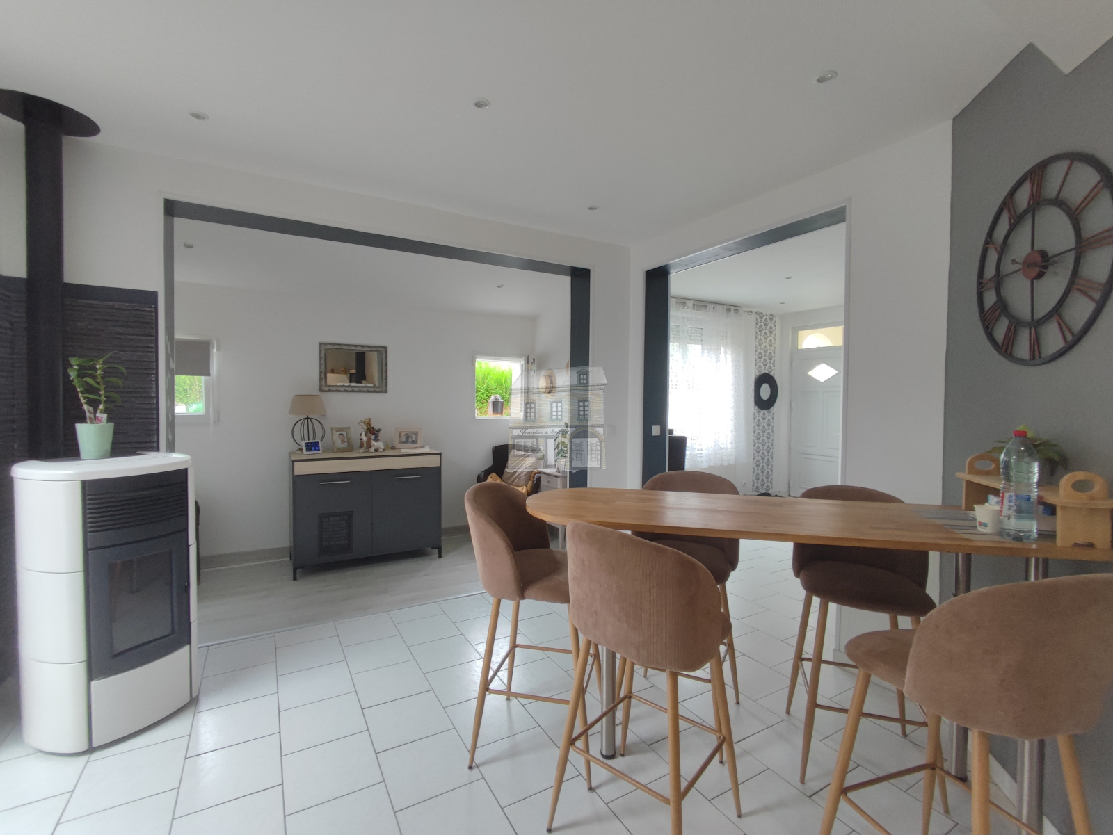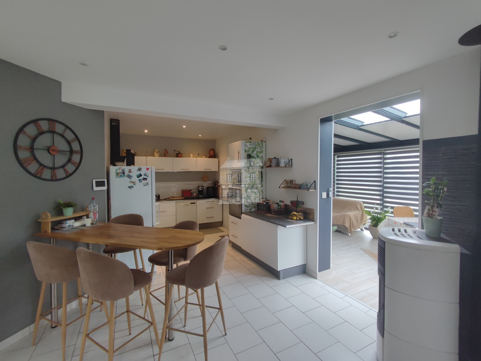 Nous vous proposons à la vente cette maison dans le centre de BEAUMONT LE ROGER. Elle comprend : Au rez-de-chaussée : Une grande entrée ou pièce de vie, une cuisine aménagée et équipée et son coin repas, un salon détente avec poêle à granulés, une véranda lumineuse accueillant un espace vie donnant directement sur la terrasse, une chambre avec salle d'eau privative, une pièce bureau et dressing (pouvant devenir une seconde chambre), ainsi qu'une lingerie et wc.