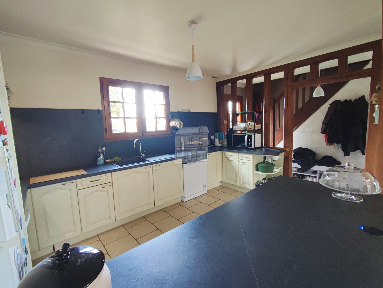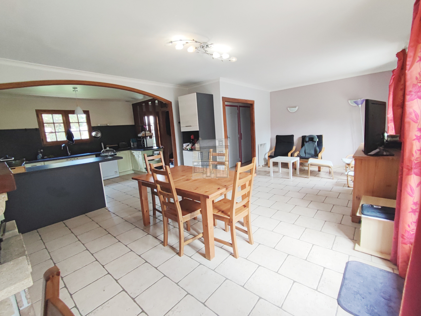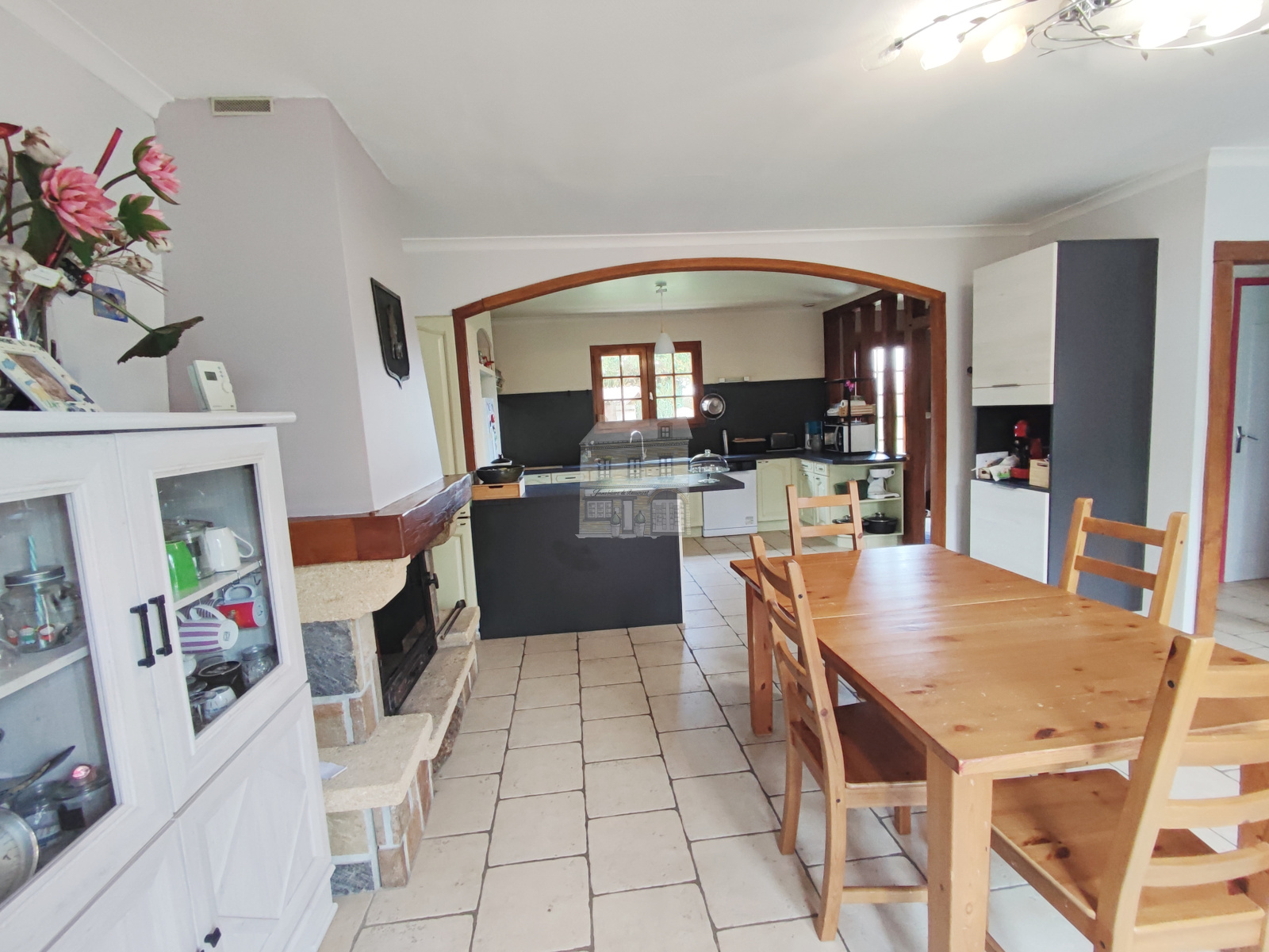Au rez-de-chaussée, une entrée vous amène sur une cuisine aménagée et équipée ouverte sur un séjour lumineux