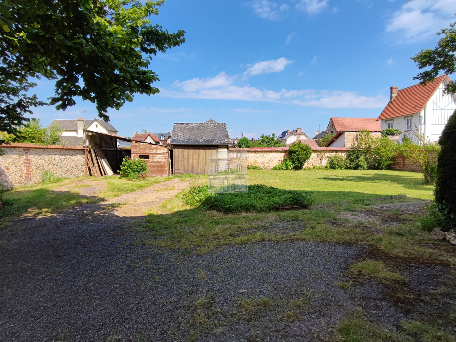 Le terrain clos et arboré de 1315 m² offre un cadre verdoyant et paisible au coeur de la ville.