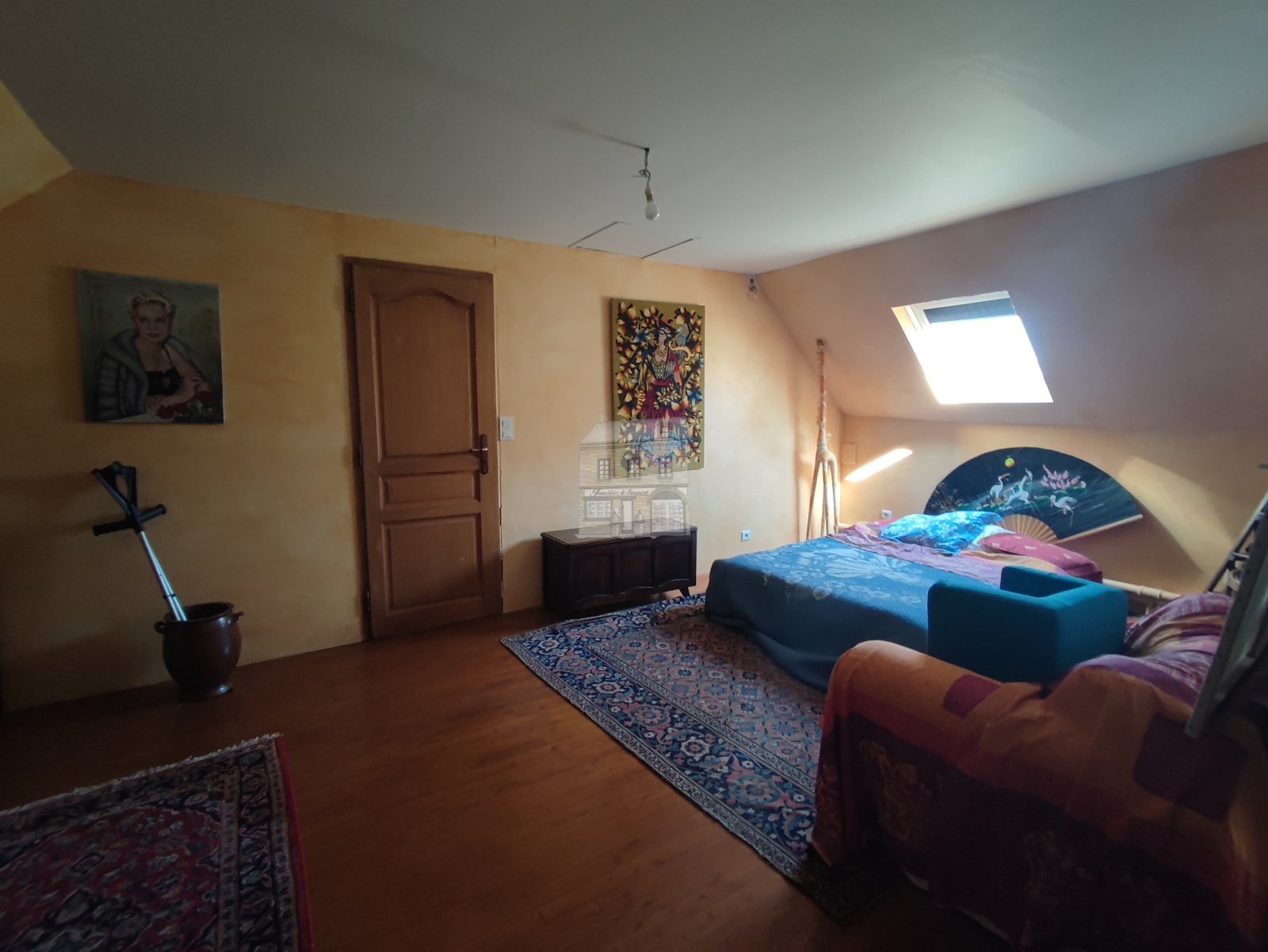 La maison principale, d'une superficie d'environ 220 m², vous accueille avec une grande entrée qui mène à un séjour-salon avec une cheminée insert, créant une atmosphère chaleureuse et conviviale. Une véranda ajoute une touche d'élégance et vous permet de profiter pleinement de la vue sur le parc. Une cuisine aménagée offre un espace idéal pour préparer de délicieux repas. Au rez-de-chaussée, vous trouverez également une salle de bains et deux chambres, dont une avec salle d'eau privative.