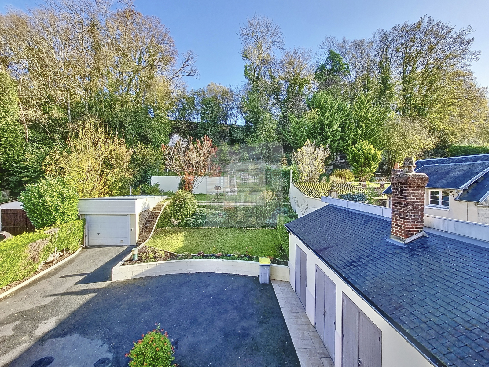 Vous pourrez profiter d'un jardin de 924 m² avec terrasse et parking, ainsi que de divers locaux (chaufferie, buanderie, cellier, réserve et d'un garage avec une cave attenante.