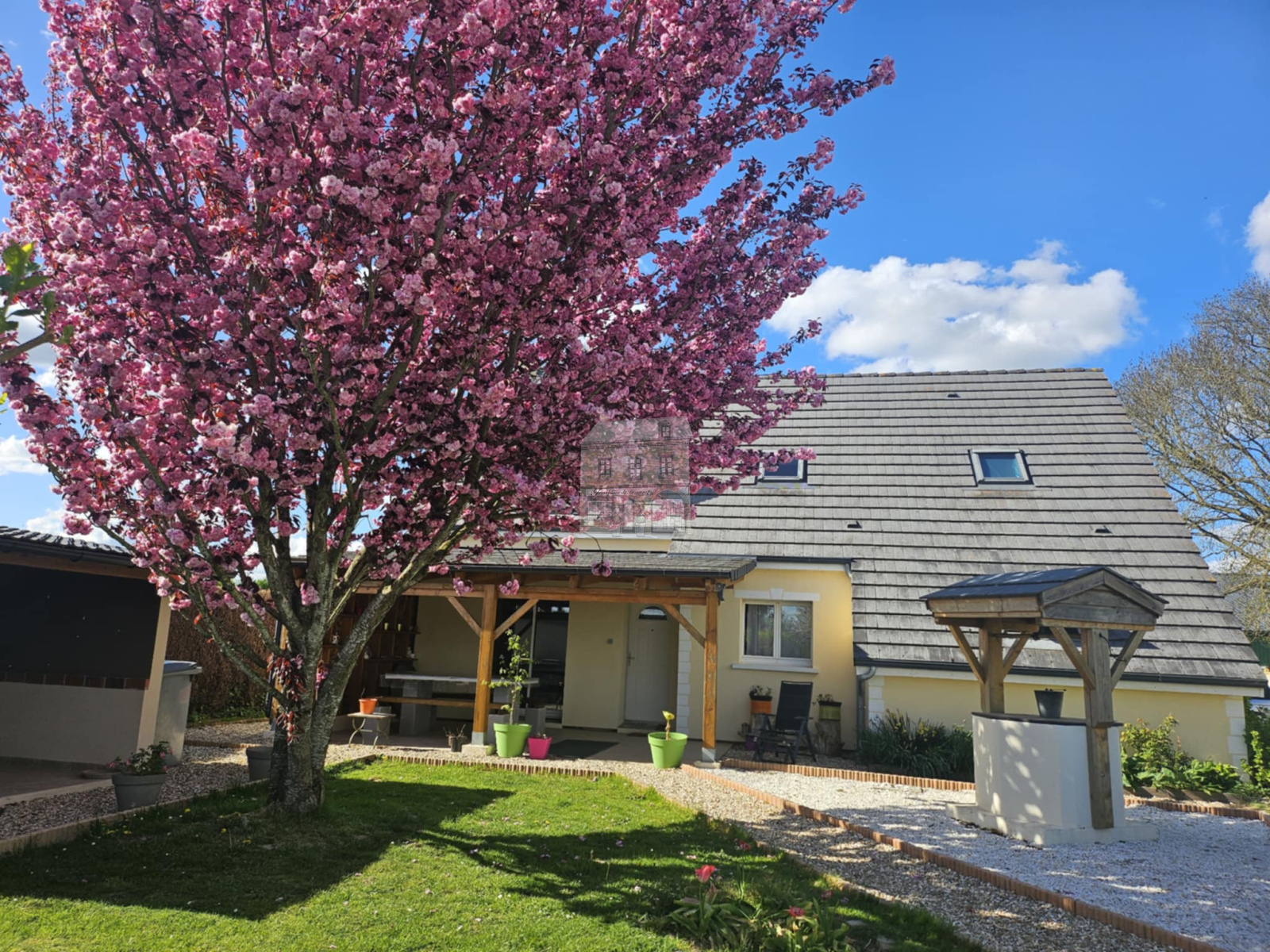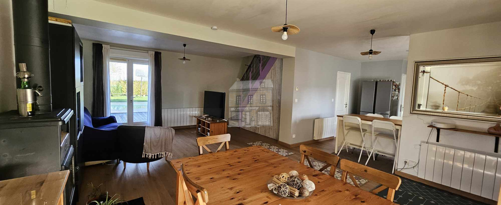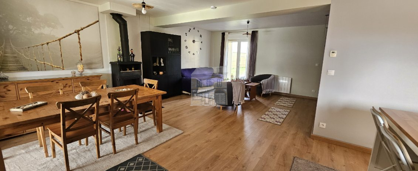 Au calme dans une impasse, habitation de 2005 de 108m² environ avec sa dépendance de 25m², offrant une entrée donnant sur une pièce de vie lumineuse de 34m² avec son poêle à bois, une cuisine ouverte entièrement équipée, une chambre avec dressing, une salle de bains, des toilettes et un accès au garage carrelé/isolé.