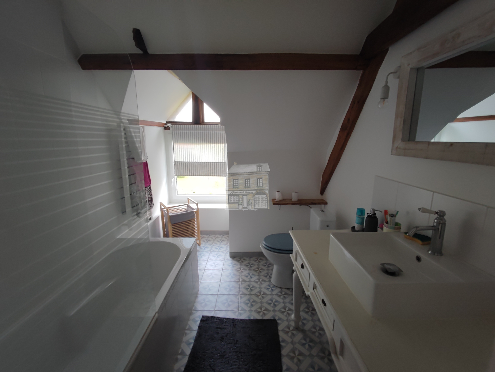 Nous vous proposons à la vente cette belle maison normande entièrement rénovée, comprenant au rez-de chaussé une grande entrée avec placard, une buanderie, une cuisine aménagée, un séjour - salon avec cheminée ouverte, une chambre, une salle d'eau, wc et cellier.