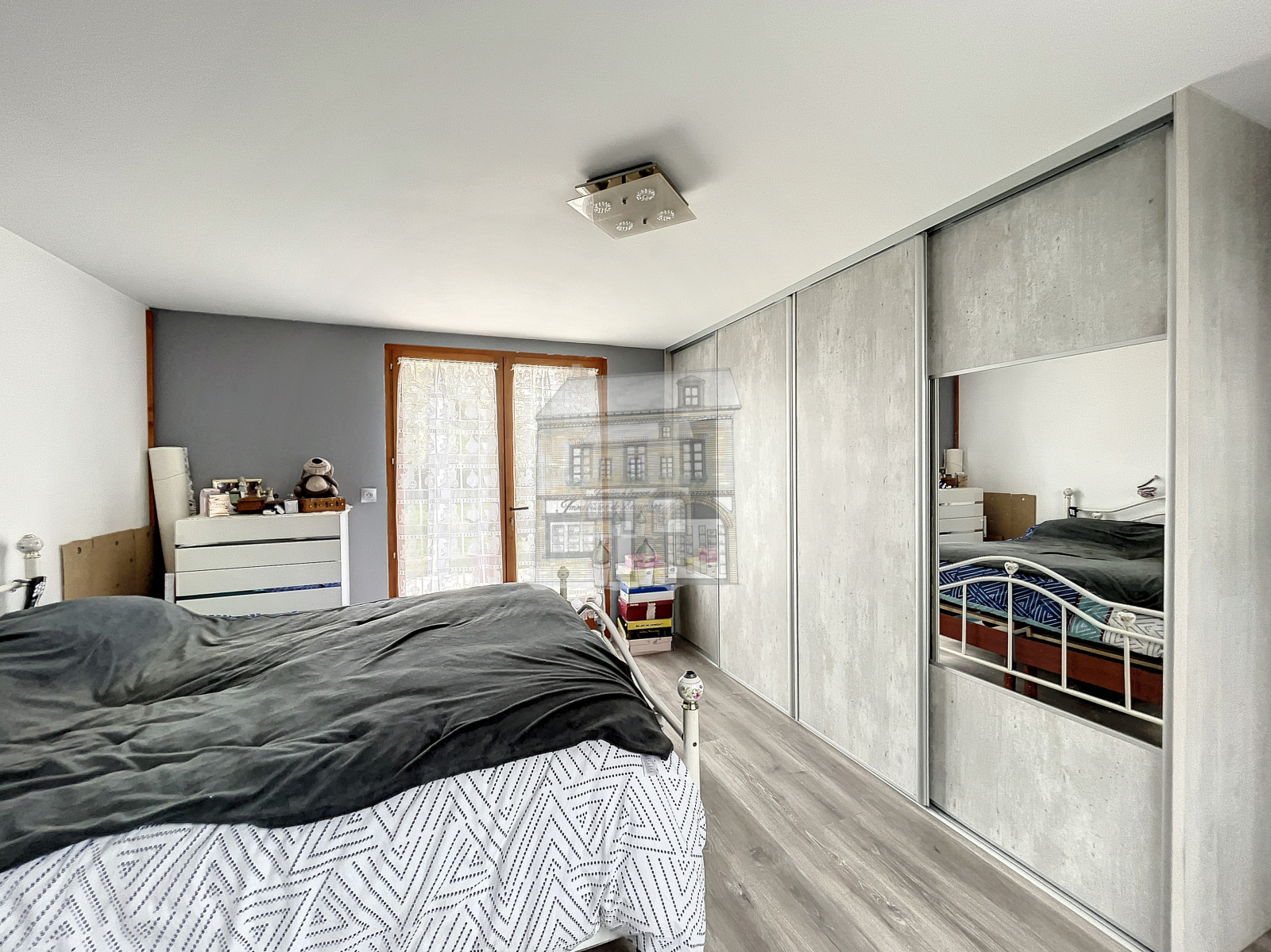 Cette maison comprend au rez de chaussée : un salon/séjour avec une cheminée insert, une cuisine aménagée, deux chambres dont une avec WC, une salle d'eau avec WC et un cellier.