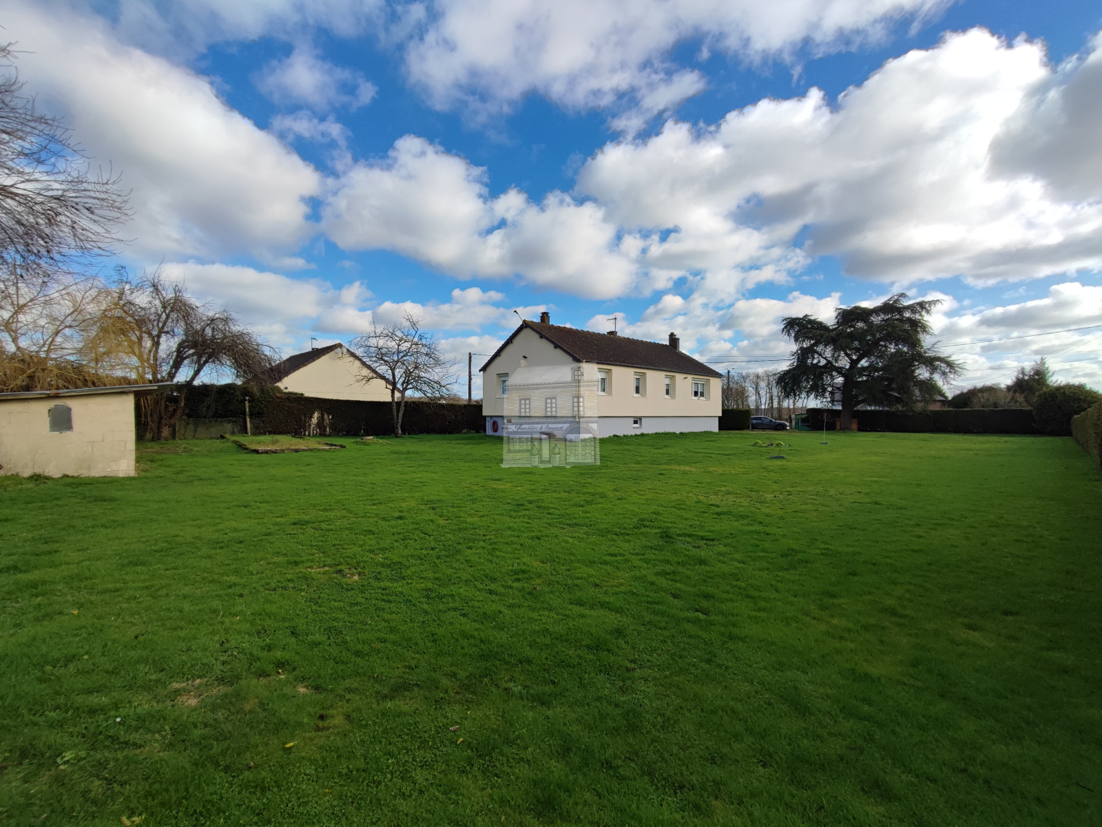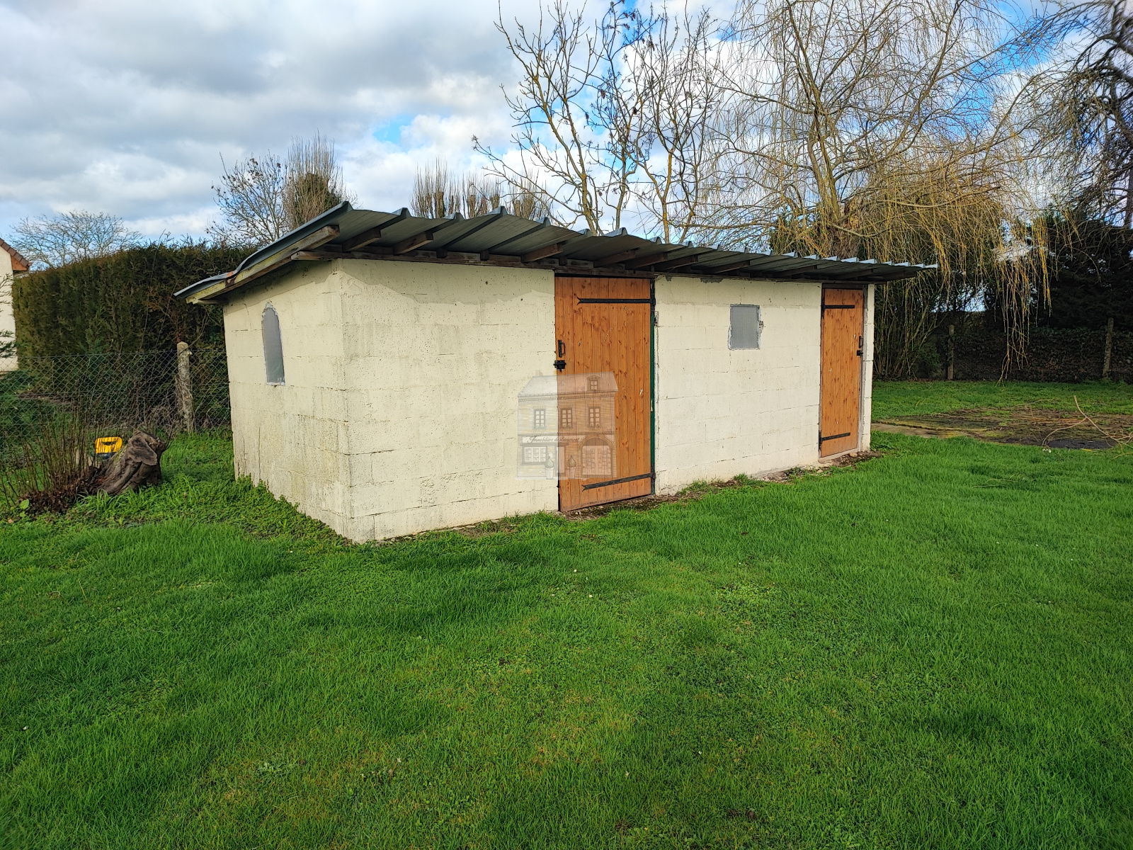 Cette maison est implantée sur 1 660 m² de terrain avec une petite dépendance.