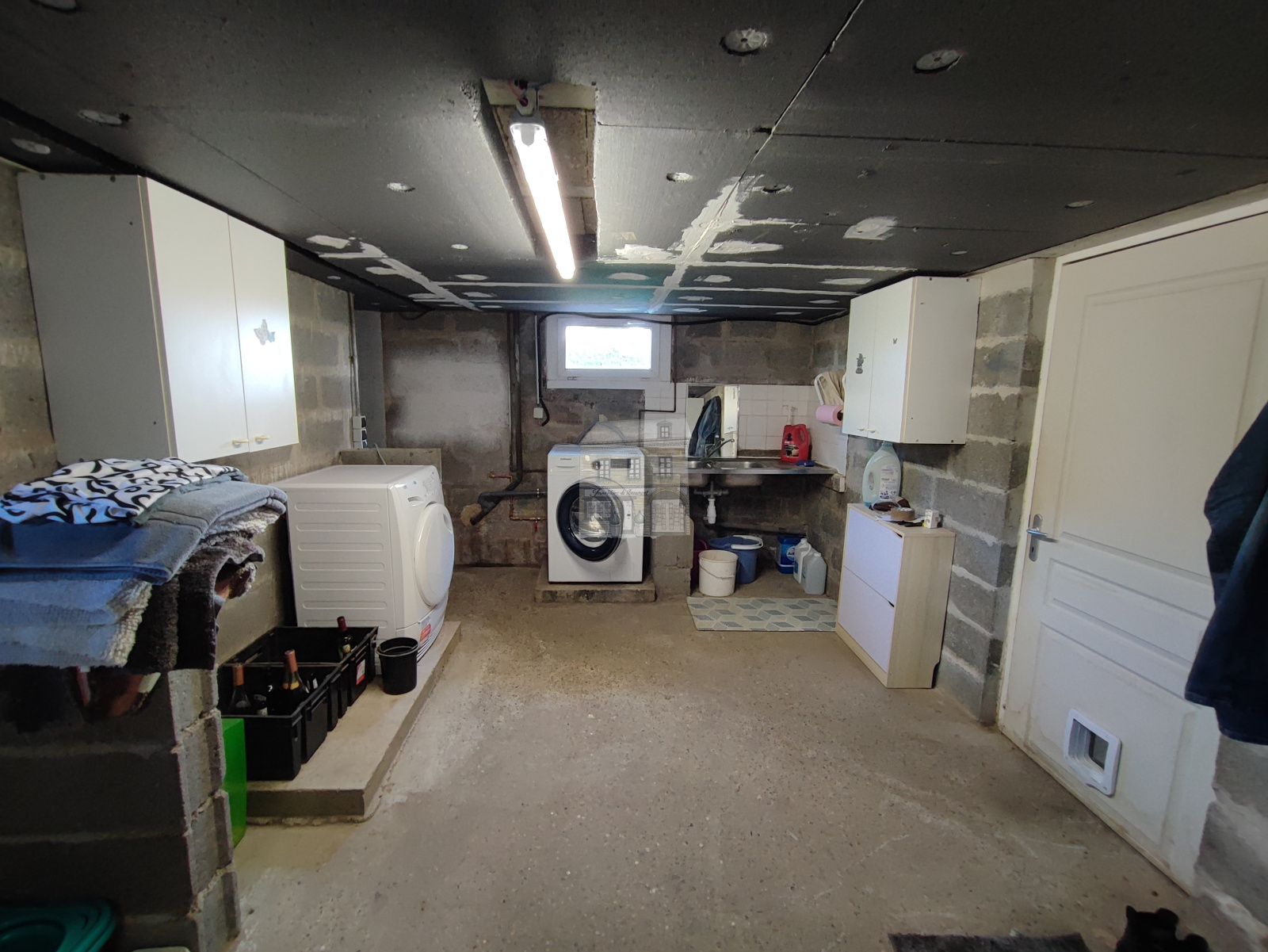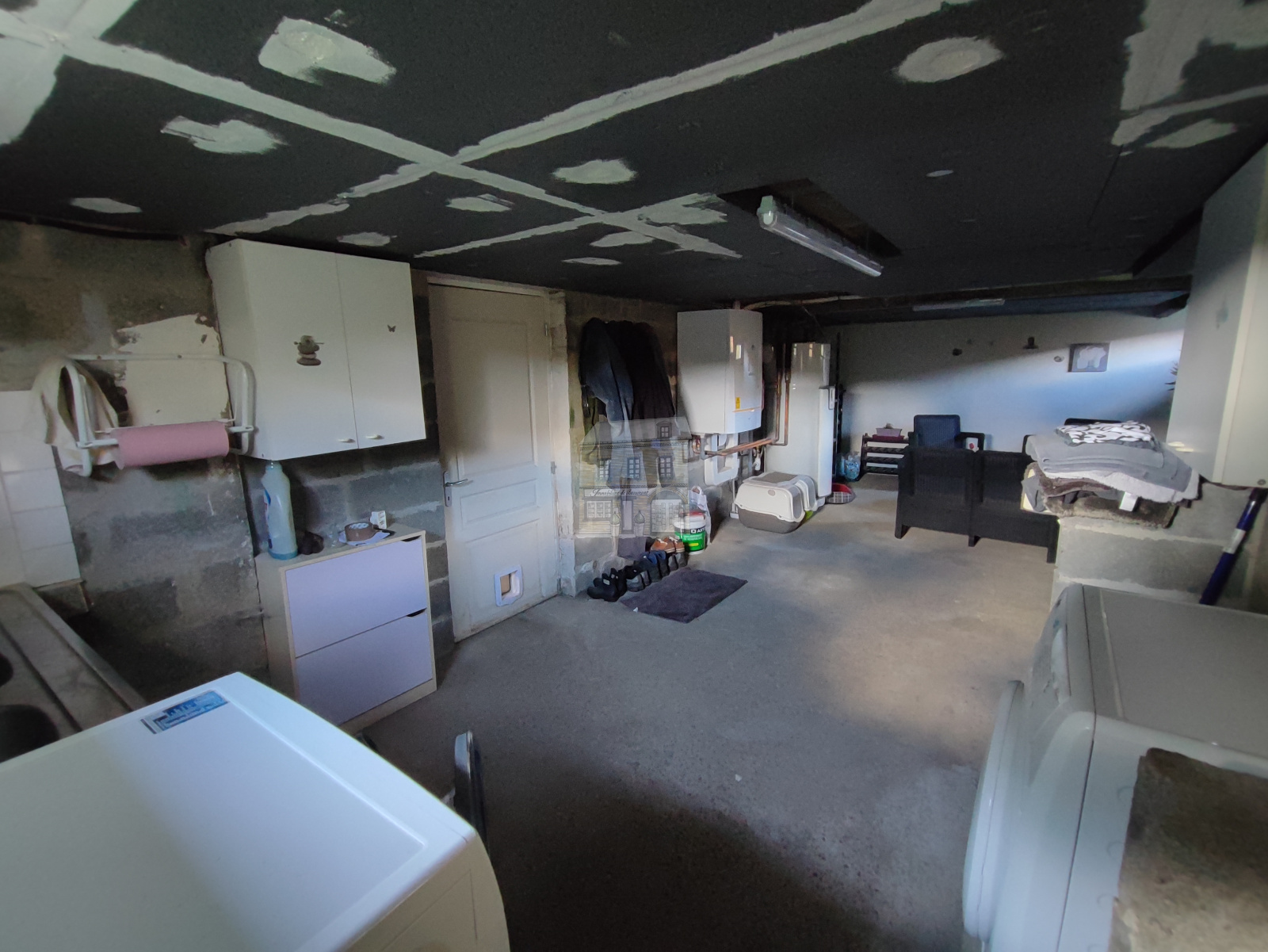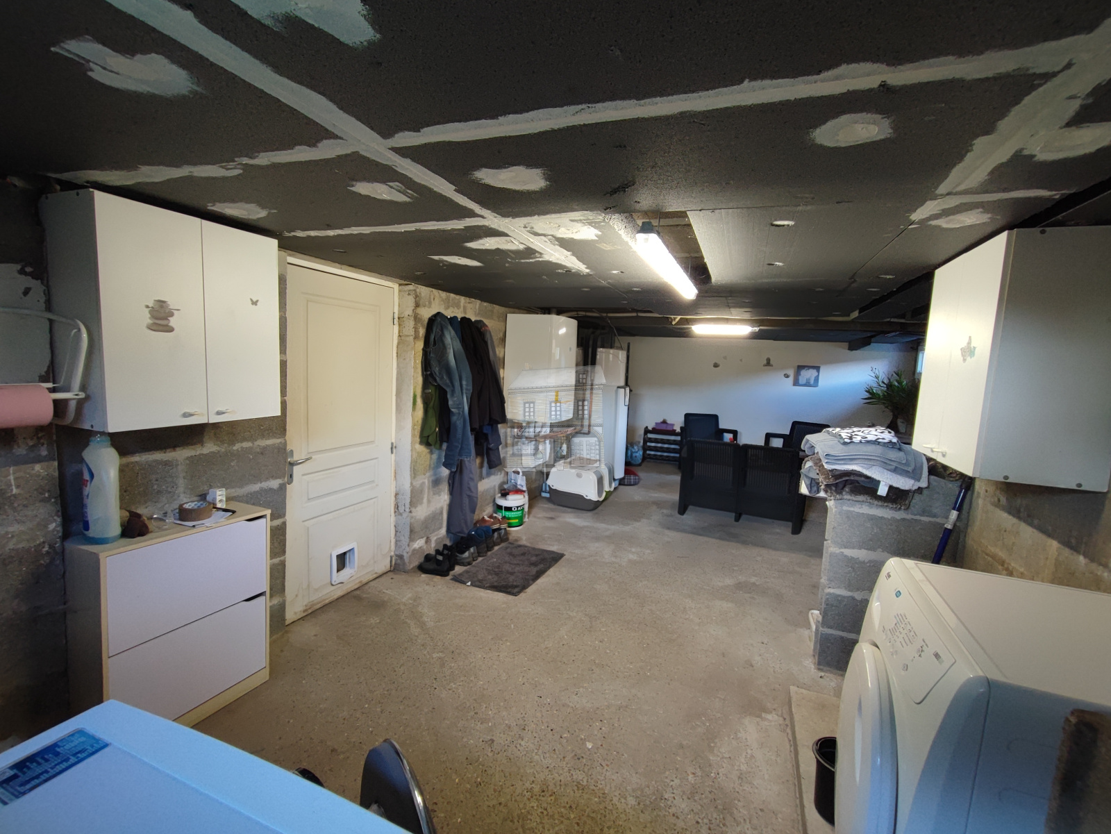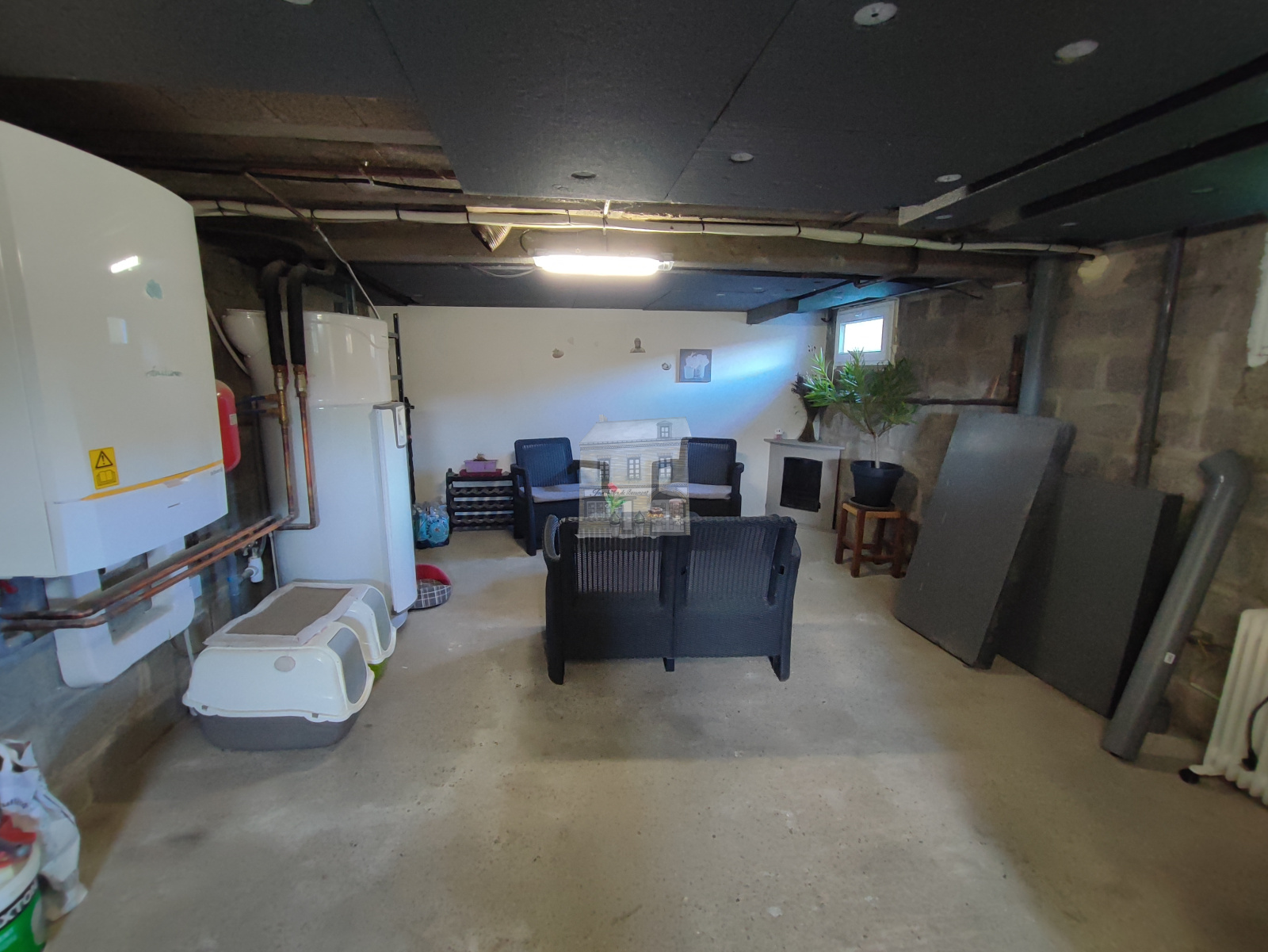Cette maison est édifiée sur un sous-sol complet à usage de garage, chaufferie/buanderie et atelier.
