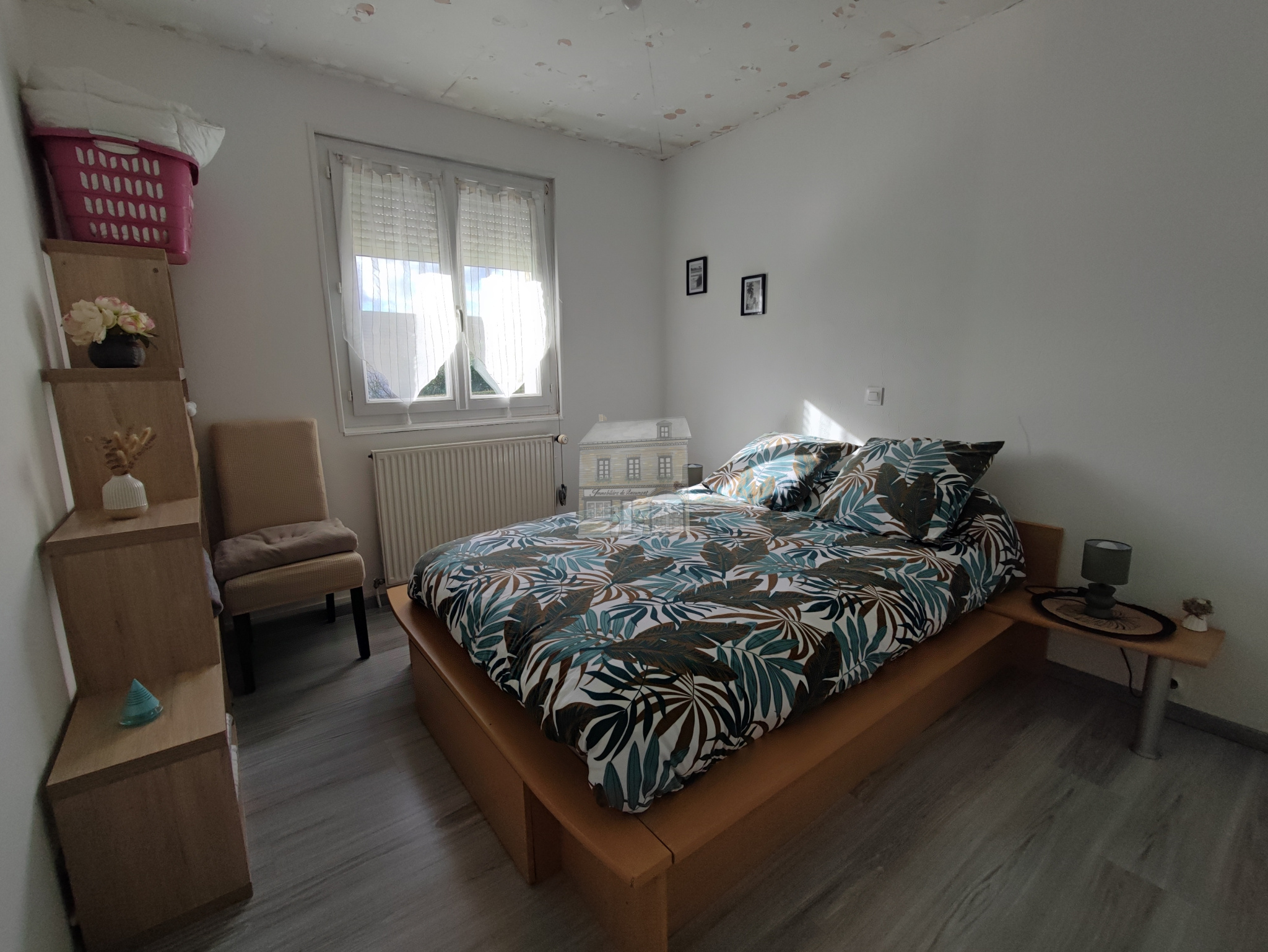 Cette maison rénovée d'environ 89 m² comprend une entrée avec une penderie, un séjour/salon avec une cuisine ouverte aménagée et équipée, un couloir desservant deux chambres, une salle d'eau, et WC.