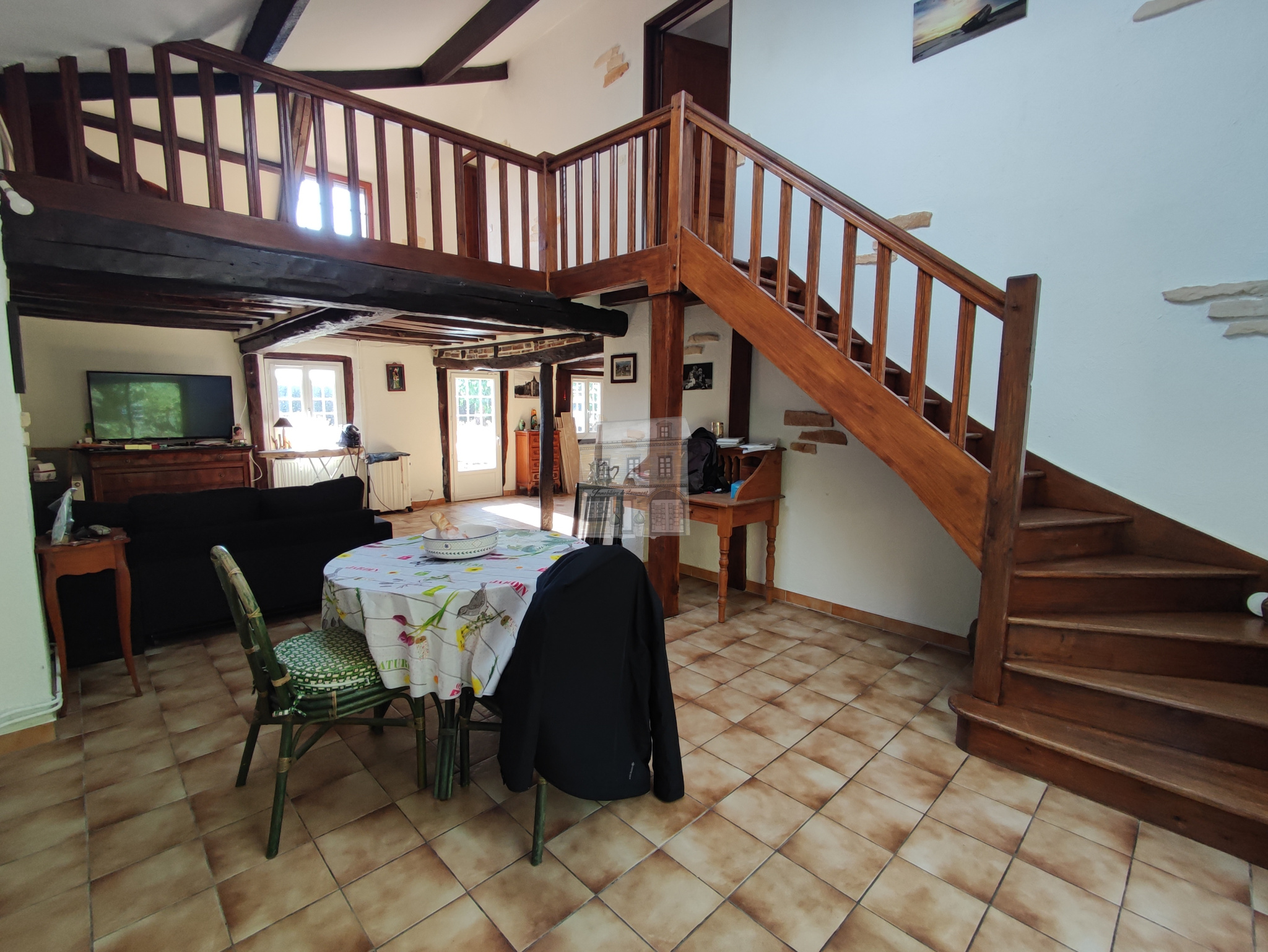 A l'étage, une mezzanine au-dessus de la partie cellier offrant un espace bureau et au-dessus du séjour cathédrale une pièce palière dessert trois chambres confortables avec une vue plongeante sur le séjour;