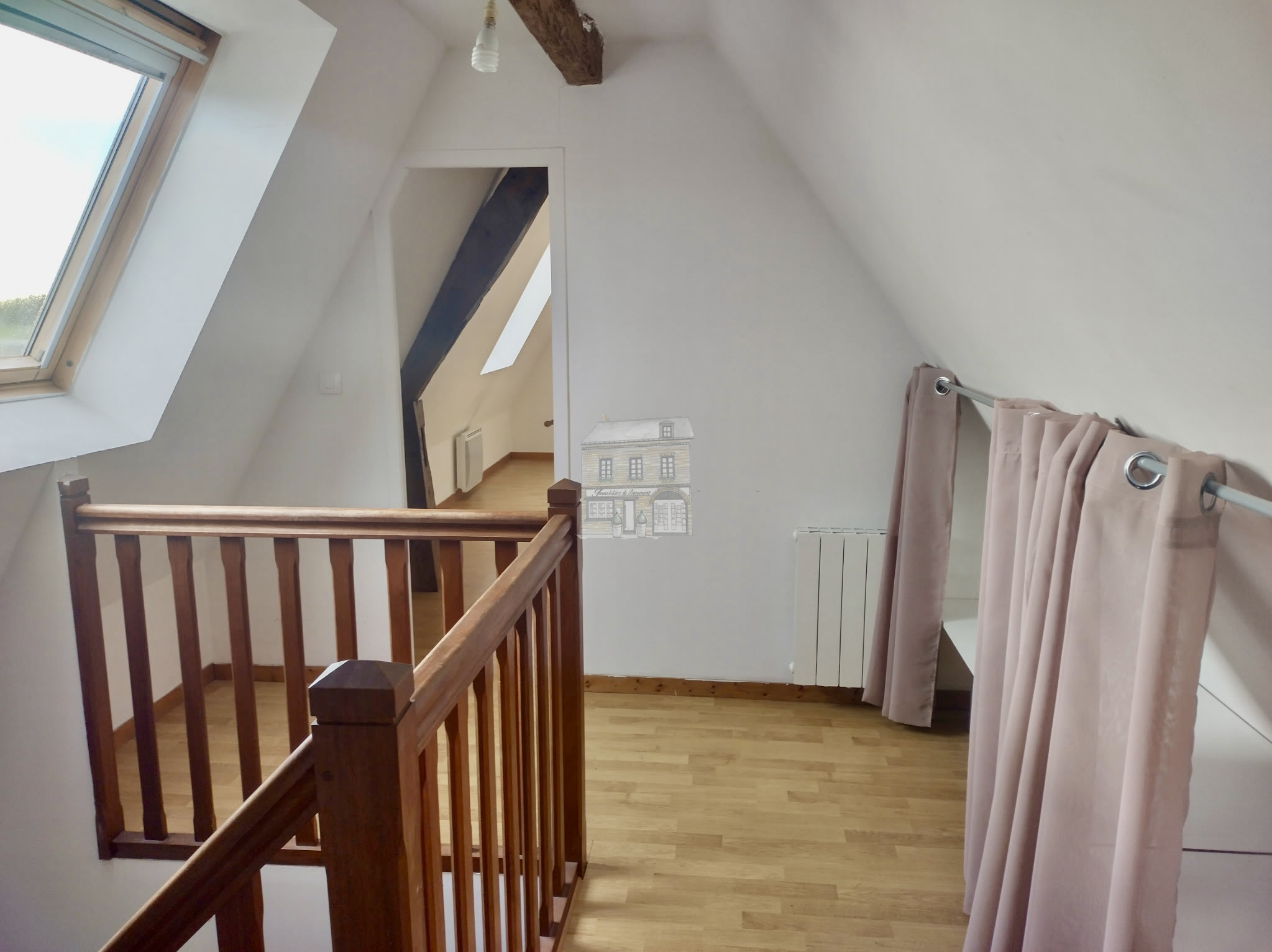 - Au premier étage avec accès indépendant : un appartement duplex 80m², comprenant une entrée, une cuisine, une salle d'eau, un séjour et deux chambres au-dessus. Actuellement libre.